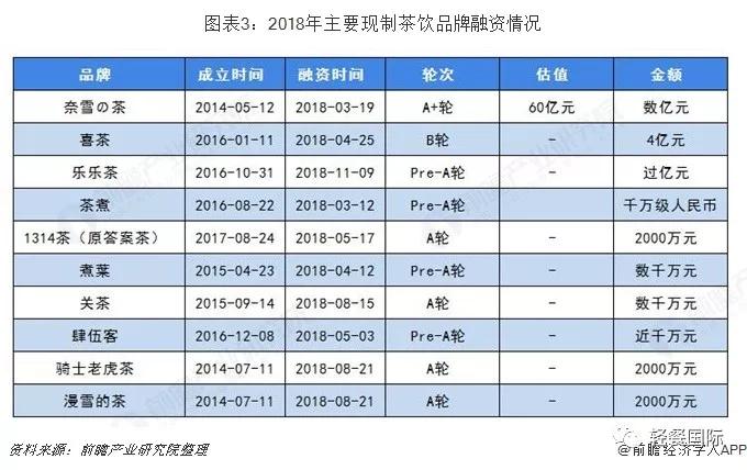 2018年的奶茶投资基本都集中在现制茶饮,在一二级市场资金紧张的背景下,现制奶茶几家明星品牌全年融资仍然超过了10亿元。